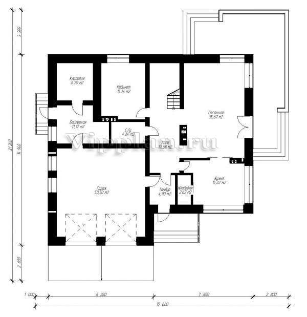 | Размеры дома: | 21.26м×19.88м |