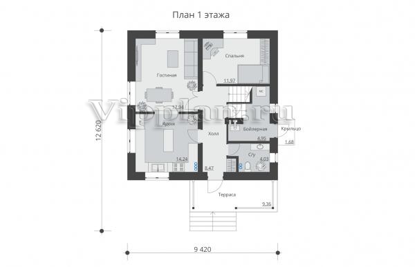 | Размеры дома: | 12.62м×9.42м |