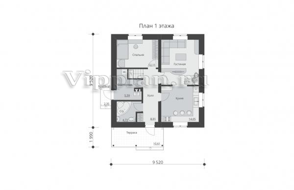 | Размеры дома: | 9.52м×11.51м |